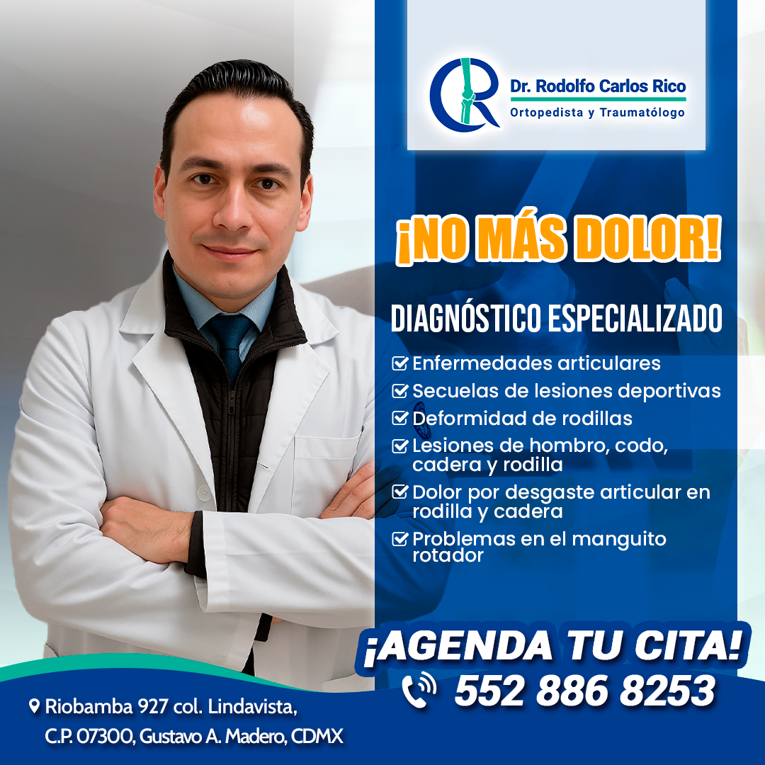 ¿Dolor en huesos, articulaciones o lesiones que no mejoran? El Dr. Carlos Rico, especialista en ortopedia y traumatología, está aquí para ayudarte a recuperar tu movilidad y bienestar.